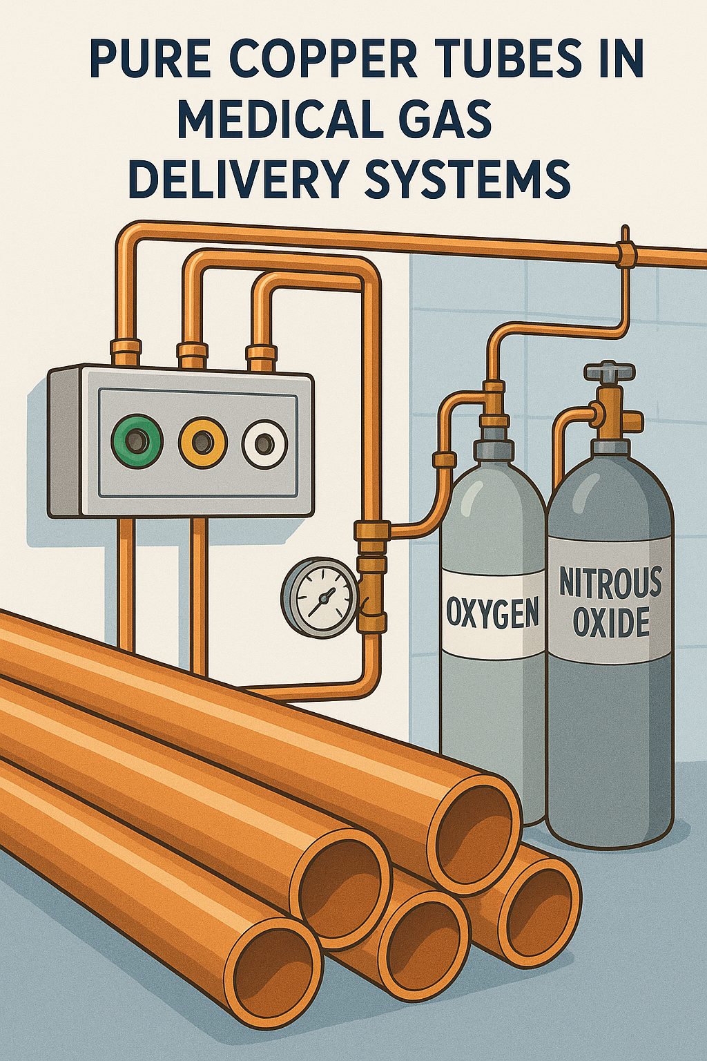 Jedným z najvýznamnejších použití čistých medených rúr v lekárskej oblasti je v systémy dodávky medicinálnych plynov . Nemocnice a zdravotnícke zariadenia sa spoliehajú na systémy medicinálnych plynov, ktoré dodávajú pacientom kyslík, dusík, oxid dusný a ďalšie kritické plyny. Tieto plyny sa používajú v širokej škále liečebných postupov vrátane podpory dýchania, anestézie a pri prevádzke lekárskych zariadení.