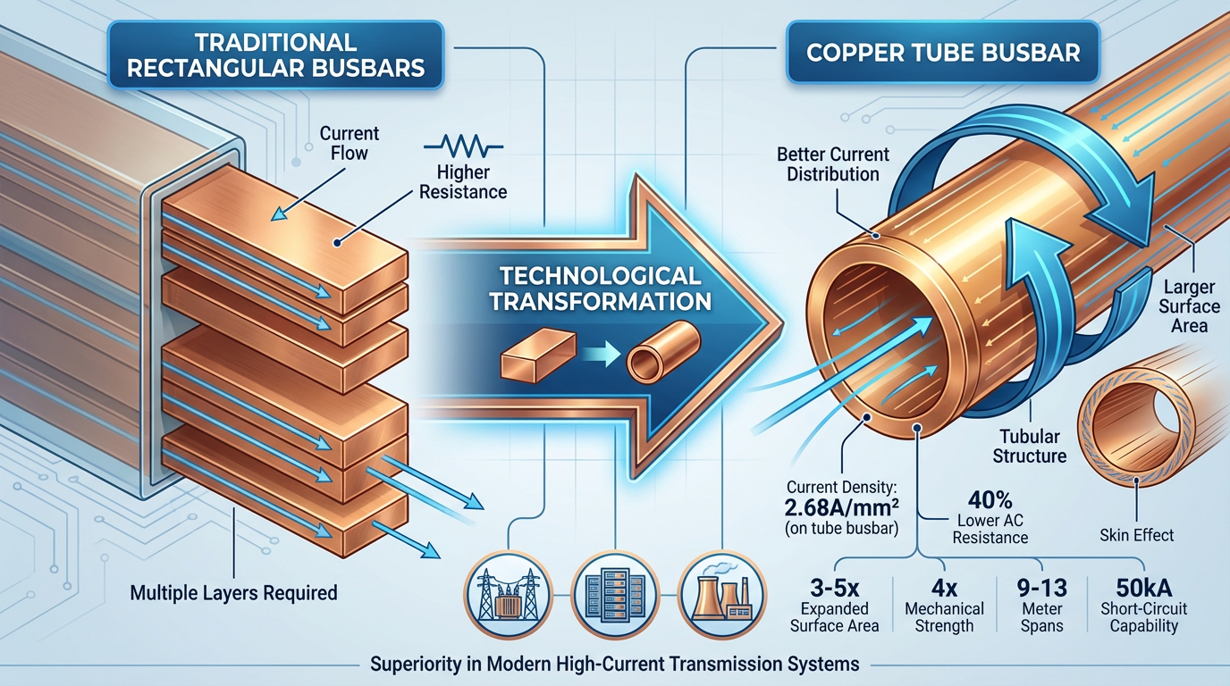 Modernizácia globálnej energetickej infraštruktúry vyvoláva bezprecedentný dopyt medená rúrka prípojnice. Hoci tieto produkty predstavujú len 2 % – 3 % celkového dopytu po medených rúrach, zaznamenávajú tempo rastu presahujúceho 200 % ročne v aplikáciách, ako sú rozvodne ultravysokého napätia, dátové centrá a nové energetické elektrárne. Hlavná výhoda spočíva v ich dutá rúrková konštrukcia , ktorý zväčšuje povrch vodiča 3-5 krát, zaisťuje rovnomerné rozloženie prúdu pozdĺž steny rúrky, znižuje koeficient efektu kože pod 0,8 a znižuje AC odpor o 40% v porovnaní s pravouhlými prípojnicami s ekvivalentnou plochou prierezu.