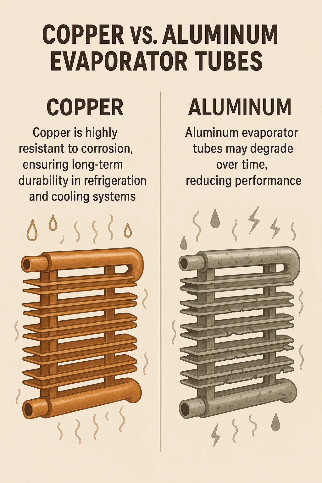 Keďže chladiace systémy vyžadujú vysoko účinný výkon, meď evaporator tubes prevyšujú svoje hliníkové náprotivky v poskytovaní rýchlejšej a efektívnejšej výmeny tepla.