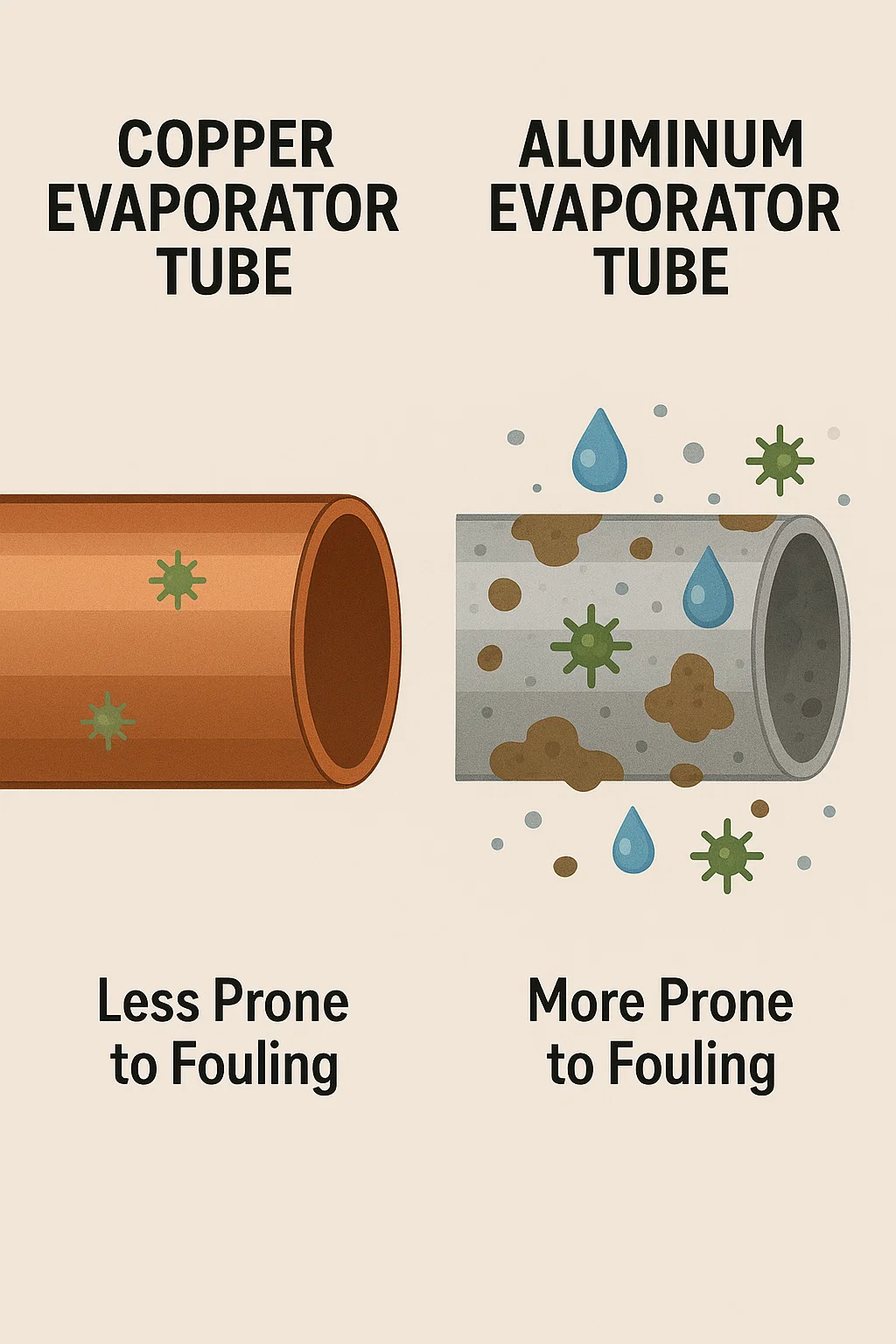 Znečistenie je bežným problémom v chladiacich systémoch, kde sa nečistoty, vlhkosť a iné nečistoty hromadia na povrchoch výmenníkov tepla, čím sa znižuje výkon systému. Medené rúrky výparníka sú menej náchylné na znečistenie ako hliník, pretože ich povrchové vlastnosti bránia hromadeniu nečistôt.