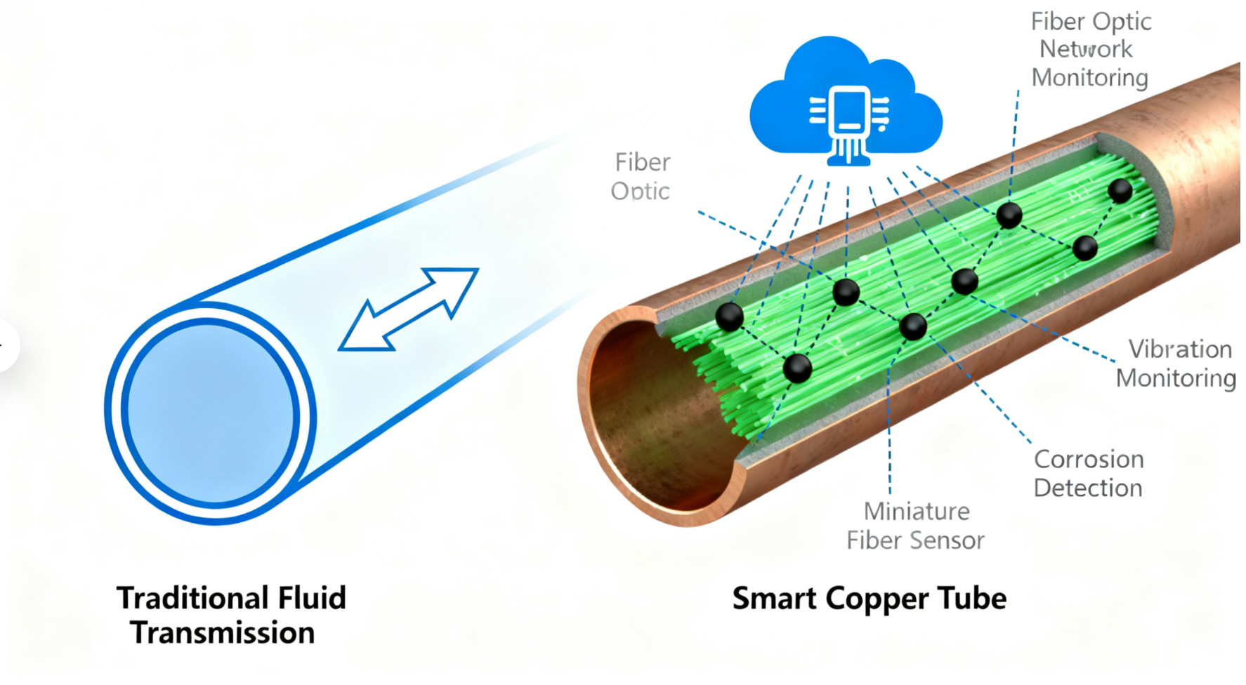 (Titulok: Od pasívneho potrubia k aktívnemu senzoru: Základný vývoj úlohy medenej trubice, od obyčajného vodiča látok ku generátoru a vysielaču prevádzkovej inteligencie.)