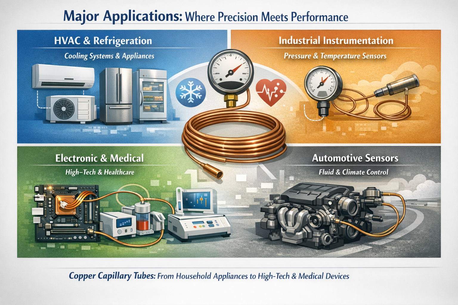 Medené kapiláry sa vďaka svojej schopnosti regulovať prietok tekutín s extrémnou presnosťou nachádzajú vo všetkom, od domácich spotrebičov až po zdravotnícke zariadenia, ktoré zachraňujú život.