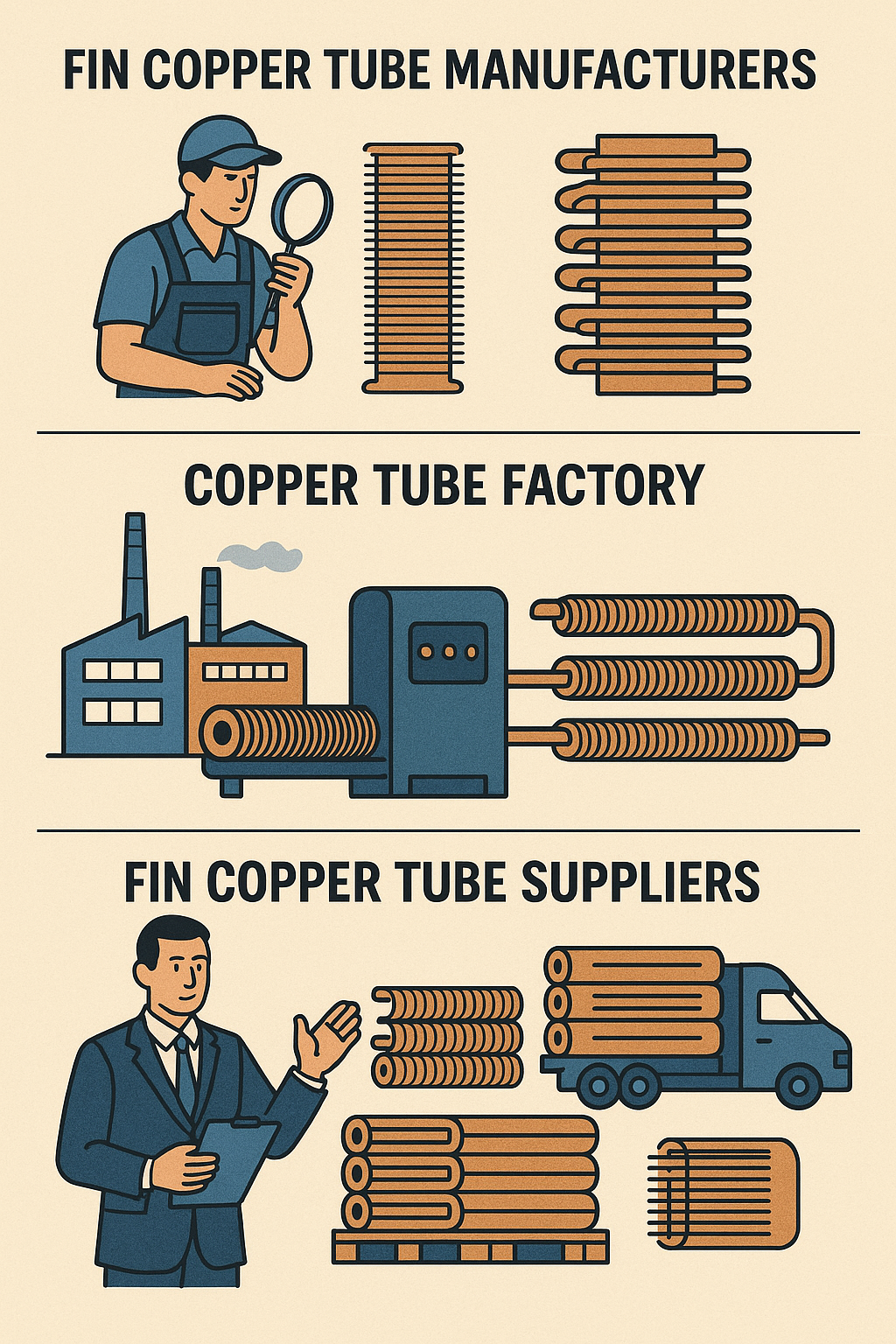 Akonáhle sú medené rúry vyrobené, distribuujú sa prostredníctvom siete dodávateľov medených rúrok Fin. Títo dodávatelia sú zásadní pri zabezpečovaní toho, aby podniky mali prístup k potrebným komponentom na budovanie alebo modernizáciu svojich chladiacich systémov. Dodávatelia poskytujú malé aj veľké množstvá, čím uspokoja potreby jednotlivých spotrebiteľov aj veľkých priemyselných projektov.