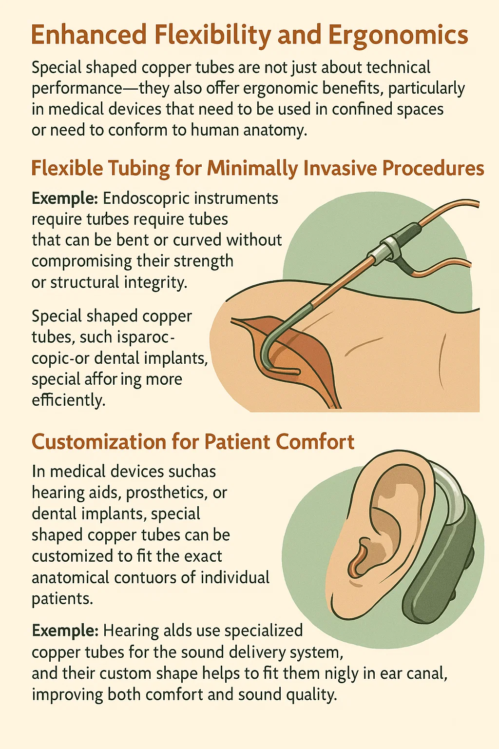 V zdravotníckych pomôckach ako napr načúvacie prístroje , protetika , alebo zubné implantáty , špeciálne tvarované medené rúrky je možné prispôsobiť tak, aby zodpovedali presným anatomickým kontúram jednotlivých pacientov. Toto prispôsobenie zlepšuje oboje pohodlie a efektívnosť zariadenia.