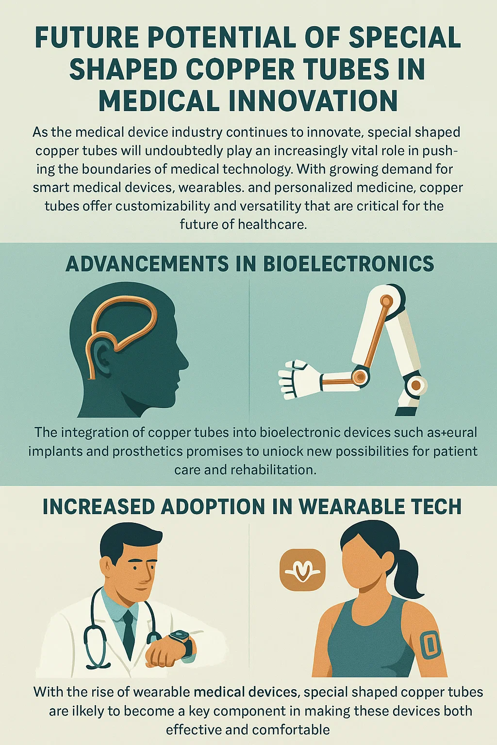Keďže priemysel zdravotníckych pomôcok pokračuje v inováciách, špeciálne tvarované medené rúrky budú nepochybne zohrávať čoraz dôležitejšiu úlohu pri posúvaní hraníc medicínskej technológie. S rastúcim dopytom po inteligentné zdravotnícke zariadenia , nositeľné zariadenia , a personalizovanej medicíny , ponuka medených rúr prispôsobiteľnosť a všestrannosť ktoré sú rozhodujúce pre budúcnosť zdravotníctva.